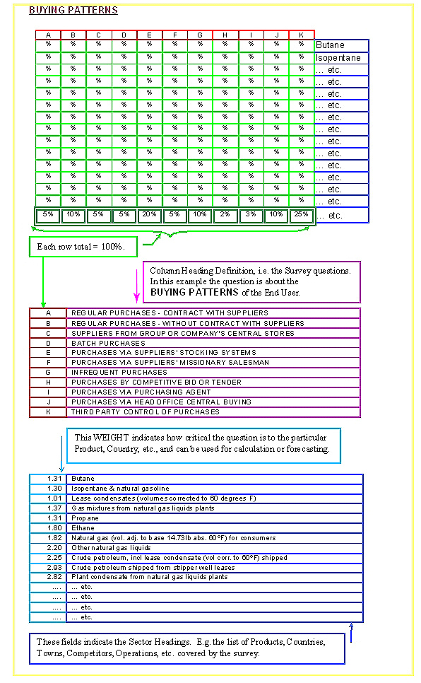 These surveys cover the Markets, Trade Cell, Towns, Products, Competitors, Operations and Product Flows in the in terms of the various levels of commercial activity. There are 24 Surveys included in the basic database; however some of the databases will provide more detailed information and further levels of data.